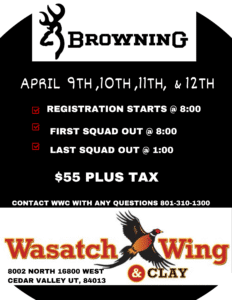 • We Will Be CLOSED TO THE PUBLIC APRIL 28th- MAY 3rd for the UTYESS STATE SHOOT.